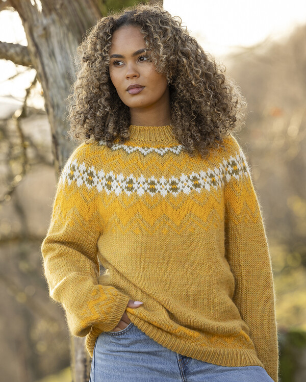 Strikk en elegant og varm genser med dette strikkemønsteret. Det dekorative flerfargemønsteret over bærestykket gir et tidløst og nordisk uttrykk, mens den myke passformen og klassiske fasongen gjør genseren perfekt for kjøligere dager. En stilren genser som passer like godt til hverdags som til fritid.