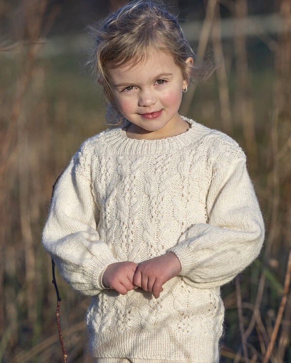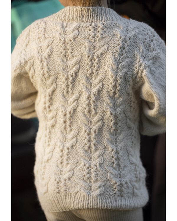 Strikk en myk og klassisk barnegenser med dette strikkemønsteret. De vakre flettene gir genseren et elegant og gjennomar...