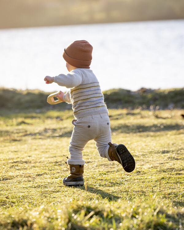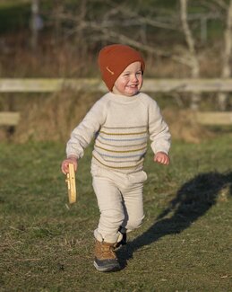 Strikk en myk og lett genser til barn med dette strikkemønsteret. De diskrete stripene gir genseren et lekent, men stilrent uttrykk,