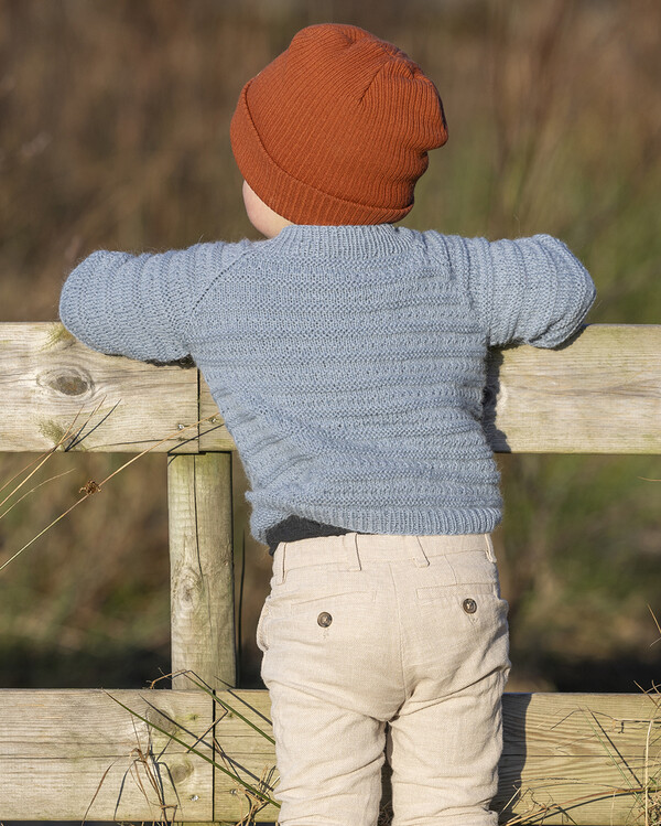 Strikk en myk og stilren barnegenser med dette strikkemønsteret. Den diskrete strukturen gir genseren et rolig og moderne uttrykk,