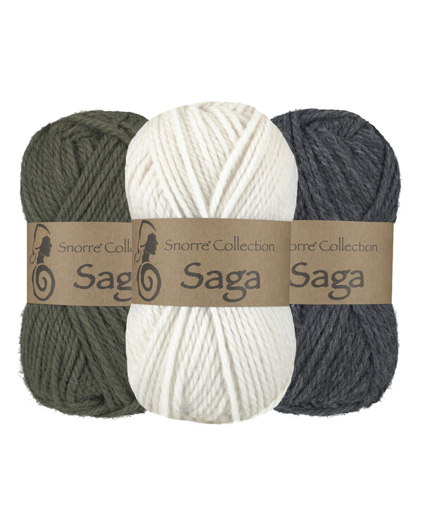 Saga er et mykt og varmt garn fra Viking of Norway. Blandingen av ull, fin alpakka og nylon gir både en eksklusiv følelse, deilig varme og god slitestyrke.