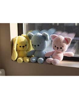 En søt heklet kanin med lange ører og myk kropp – perfekt for små hender å kose med. Den blir fort en kjær følgesvenn på...