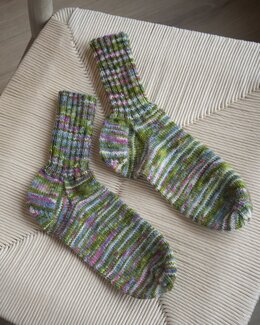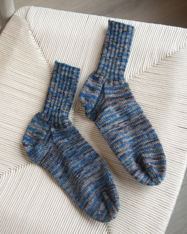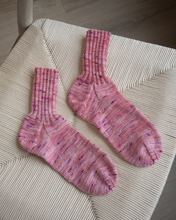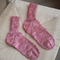 Strikkede sokker i vakkert rosamelert garn med myk passform og klassisk design. Perfekte for å holde føttene varme hjemm...
