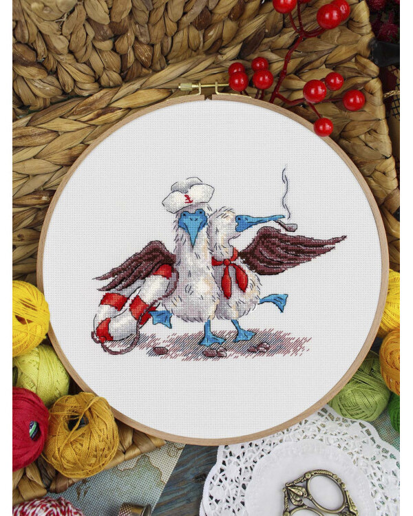 Et lekent og sjarmerende korsstingsmotiv med en sprø sjøfugl i matroshatt, livbøye og pipe. Et humoristisk broderi som g...