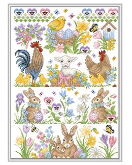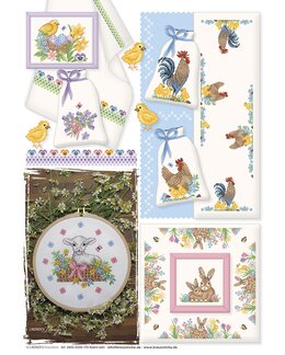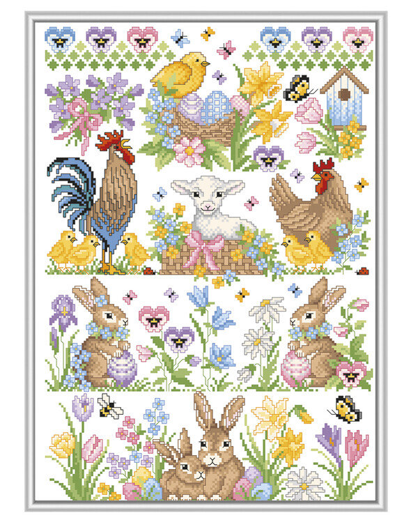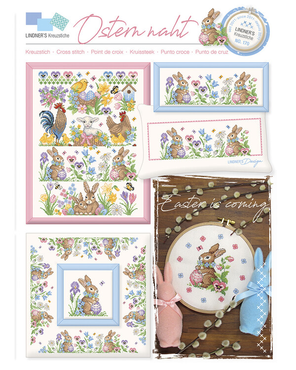 Et vårinspirert og detaljrikt korsstingsmønster fra Lindner’s Kreuzstiche med nydelige påskemotiv som sprer farge, varme og landlig sjarm.