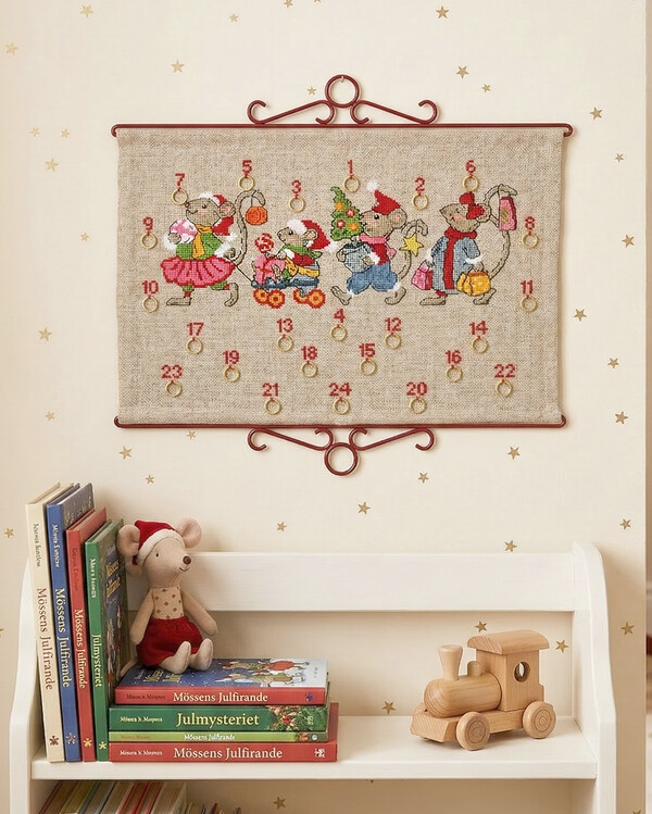 Skap en magisk jul med vår Broderipakke Kalender Musebandet! Denne sjarmerende kalenderen er dekorert med en gjeng søte mus som følger hverandre, og gjør nedtellingen til jul både morsom og stemningsfull. Perfekt for å lage din egen juletradisjon og spre glede i hjemmet ditt.