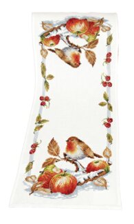 Broderes med moulinégarn i utregnede kors- og attersting på hvit aidavev, 4,4 ruter/cm. Størrelse ca 32x84 cm.