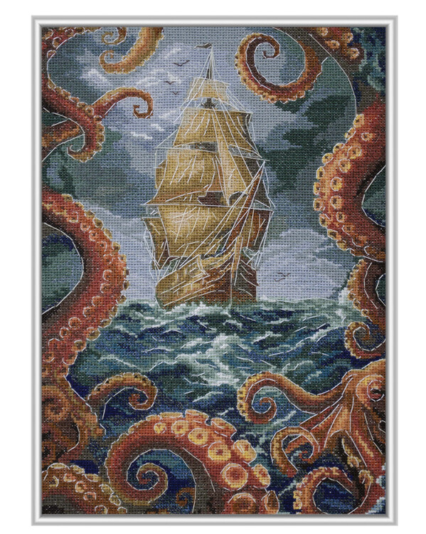 Broderiet utstråler styrke og eventyr, perfekt for deg som elsker maritime temaer og fantasy. Broderes med moulinégarn...