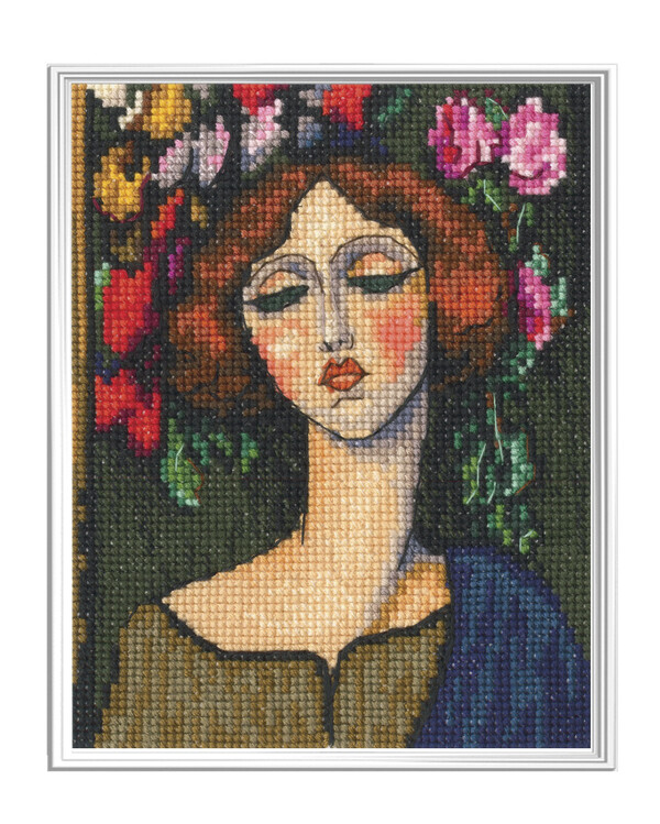 Broderier > Bilder > Broderipakke Bilde Kvinnen med blomstene