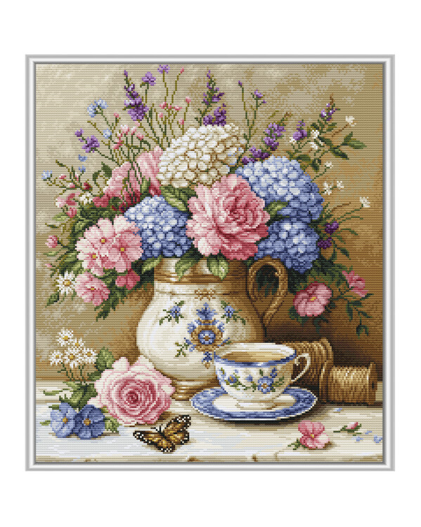 Dette korsstingsbroderiet er perfekt for deg som elsker blomster, vintageinteriør og avslappende håndarbeid.